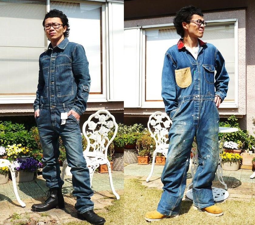 だから、今回購入した新しいつなぎ(画像左)は、とてもシルエットもきれいで、モダンなんだけど、現時点では旧つなぎ(画像右)の雰囲気には勝てない。…って、贔屓目で見てしまうんですが、どうでしょう??