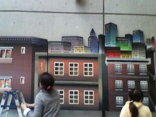 この頃になると、大きな絵を描くことにも慣れてきて、かなり短い作業時間で完成できるようになりました。相変わらず、バカでかいスペースに作業着姿で描いていたので、掃除のおばちゃんとかに目を付けられていましたけど(笑)そこでタバコ吸ったのアンタでしょ!って(>_<)