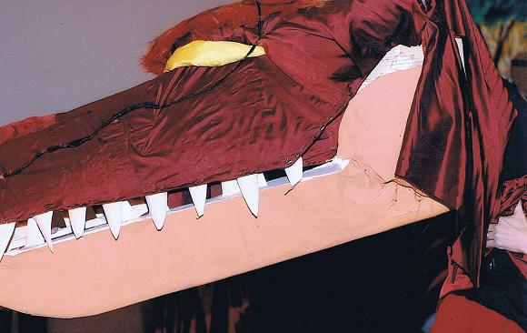この他にも「海」の背景画も描いていたので、やっぱりマジ大変でした。そしてこのドラゴン!段ボールや、トイレットペーパーの芯が使われています。 初めて「造形」というものを手掛けました。ま、I渕さんのお力あってこそのものですが!でも、このときかなー。マテリアル(素材)の味を活かす、ってことを実感できたのは。それが下記の「木」のアイディアに繋がったのだと思います。