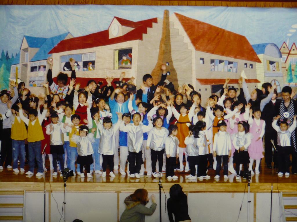 小さい子どもを動かしていくのはとても大変です。また、ただ動かすだけでなく、楽しくやりがいを持たせてやるのはもっと難しいです。その点で、にこやかにのびのびと踊り、歌う彼ら・彼女らを指導しているお母さん方に、賞賛の拍手を送りたいです!!