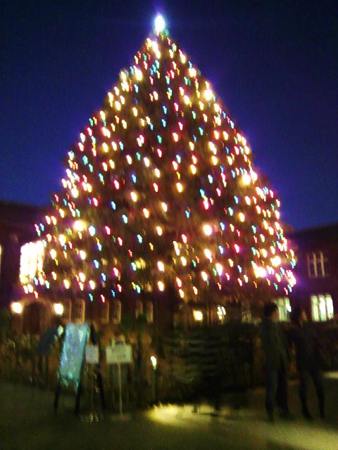6号館を出て、正門に歩いて行くと、クリスマスツリーが僕らを迎えます。立教のクリスマスツリーは非常に有名ですね。学生時代は特に愛着も何も感じなかったものに、今はこうやって携帯を向けてしまう。不思議なものです。