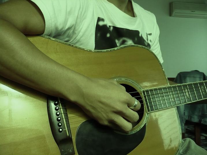 部屋の片隅から、くたびれた歌詞カードを見つける。デモテープは見つからなかったけど、メロディーは頭の中に入っている。チューニングのずれたアコースティックギターを抱えて、Cコードを響かせる。柔らかくなった指が、弦にめり込んで痛い。8拍ほどゆっくり響きを確認すると、8年前のメロディーがすぐに頭の中に再生される。そのまま歌い出しのメロディーと歌詞が、今の僕の口から流れ出る。キーはかなり高い。あの頃出た歌声が、今は出ない。年を重ねる度に、歌えなくなる歌が増えて行く。