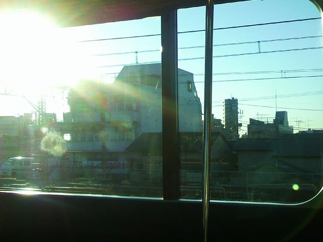 車窓から真っ直ぐ照らしてくる、まだ低い日差しが眩しかった。