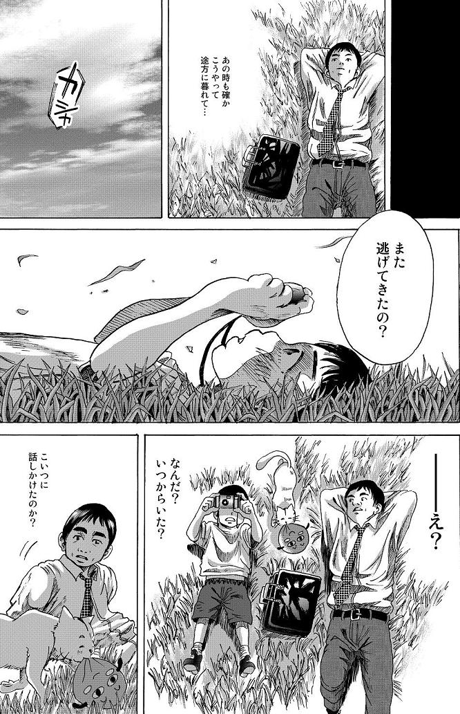 ※ちなみに「トーン」とは…一般にマンガを読むとき、グレーに見える部分(人物の影とか!)のことです。これは本当はグレーなのではなく、細かい幾つものドット(黒い点)の集まりなのですね。それが遠目からはグレーに見えるというわけです。これはマンガ雑誌が白と黒の2色で刷っているためです。トーンはそのドットの大きさ、密度によって何種類も存在しており、マンガ家なるもの、これを重ねたり、削ったりして効果的に使えるようにならなくてはいけないのであーる。