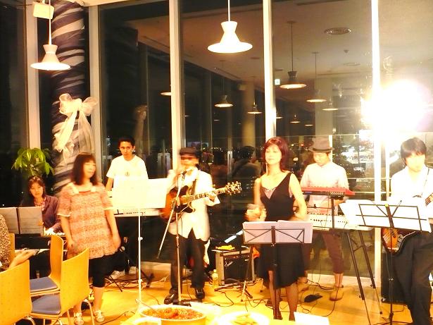 ミュージカルで音楽チームを担当している方々を中心にバンドが組まれており、そのワンマンライブ、プライベートライブなるものにお邪魔してきたのです。場所は我孫子南口から徒歩1分、けやきビル11階にある「ムッターランド」。景色がいいんですよ。そんなに広くはないのですが、ガラス張りだから夕陽や夜景もキレイそう。あいにく今日は曇りでしたが…。